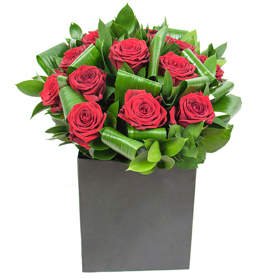 Our Stunning Red Rose Collection is a masterpiece of floral design, featuring bold red roses paired with aspidistra leaves and ruscus. This unique arrangement brings elegance and style to any room, making it an ideal gift for loved ones or a luxurious addition to your home.